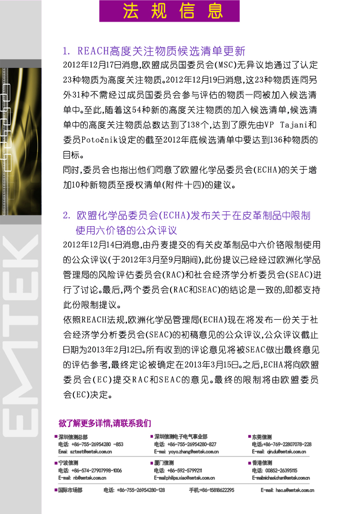 欧盟REACH 高关注物质清单中新增54种物质 - 迄今138种SVHC