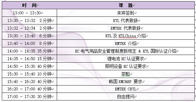 KC检测认证专题研讨会议程安排: