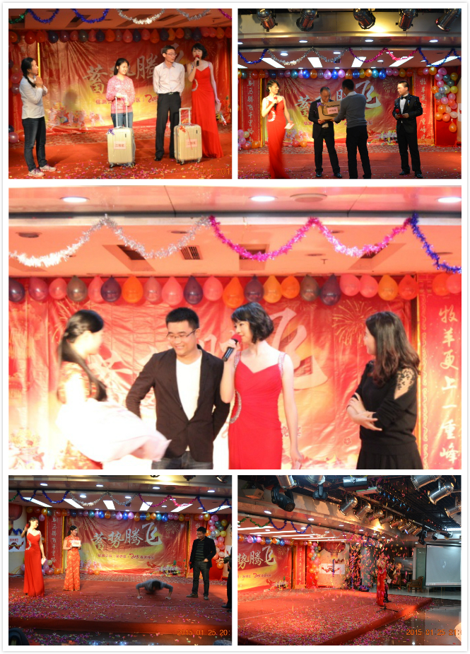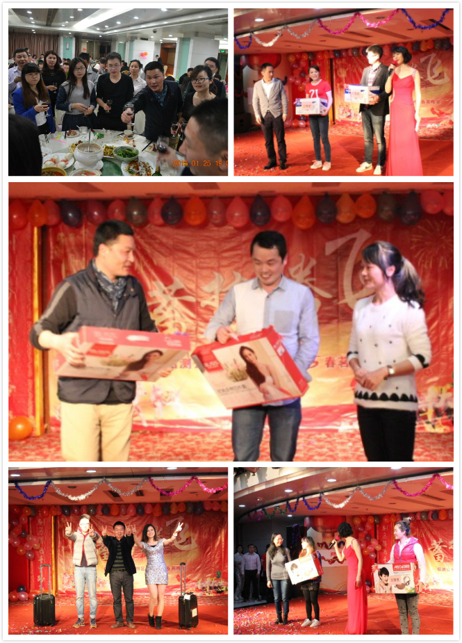 夕阳西下,各部门精心录制的新年祝福视频应和着傍晚的钟声开始了深圳信测春茗晚宴,在信测公司董事长兼总经理吕杰中先生的祝酒词后,大家纷纷举杯,用酒杯的碰撞声去铭记这最欢乐的时刻,祝福与干杯成了晚宴的主题曲,欢笑与呼唤成了整晚的主旋律。为感谢大家一年的辛劳,各位领导亲自到每桌敬酒,整个晚宴气氛浓烈。半小时后,灯光熠熠的舞台上,精心准备的各色“视觉大餐”也一一呈现,今年的节目类型丰富,有异国风情优雅、劲歌热舞火辣。最有视觉及思维冲击的要数理化部创意话剧-新三顾茅庐,巧妙地将公司的核心价值观、愿景与希望贯穿一起,展现得淋漓尽致,风趣幽默的本色演绎将晚宴推向最高潮!随着两位主持人犀利幽默的主持,蚕丝被、旅行箱、平板MINI及笔记本电脑等奖品的纷纷被今晚的幸运儿领走,为原本欢快的晚会平添了一份刺激与心跳。