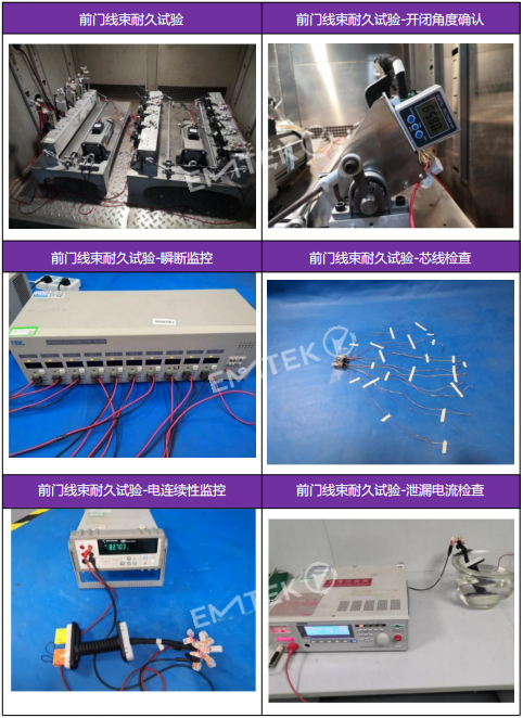 汽车电线束分布到整车各个部位,不同位置的线束有着不同复杂的温湿度环境、振动环境条件要求,尤其是在车身和各运动部件连接部位的线束,还要经受长期反复的开关运动、往复位移运动,对设计和制造工艺要求更高。设计过程中通常通过优化线束走向、选择软导线、增加橡胶件保护等方式提高线束的可靠性。线束设计标准 规范中也定义了各类型过渡线束疲劳耐久的试验方法和要求,在产品工艺定型前完成试验。 主要的产品和测试类型有:车门和过渡线束开闭疲劳耐久试验、座椅和车身过渡线束往复运动耐久试验、底盘零件和车身过渡线束振动或位移运动耐久试验、动力总成和车身过渡线束摆动耐久试验。 EMTEK 信测标准实验室与广汽研究院、广菲克、比亚迪等多家车厂在线束检测领域有合作,有十几年各类型过渡线束耐久测试经验。多年的积累,培养了一支专家团队,可自主开发模拟安装条件的工装和测试装置,研发实现不同运动曲线和运动频率的测控系统,并获得多项发明专利。 测试标准 测试能力 部分测试照片举例 联系我们 武汉信测标准技术服务有限公司 地址:湖北省武汉市硚口区古田五路17号孵化园区D2、D3厂房(430034) 服务热线:+86-27-8473 3628 E-mail:wh.pn@emtek.com.cn 广州信测标准技术服务有限公司 地址:广东省广州市黄埔区南翔三路38号A栋1楼、4楼(510663) 服务热线:+86-20-8255 3111 E-mail:gz.pn@emtek.com.cn 苏州市信测标准技术服务有限公司 地址:苏州吴中经济开发区郭巷街道淞葭路1388号(信测华东检测基地)(215124) 服务热线:+86-512-8099 6798 E-mail:sz.pn@emtek.com.cn