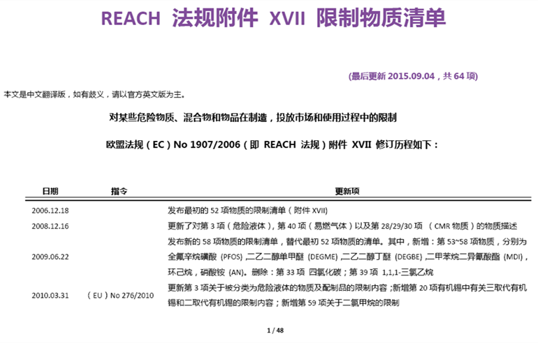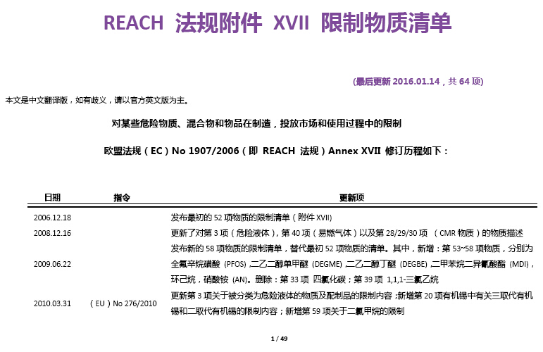 欢迎咨询EMTEK信测REACH认证服务!以下为更新目录总览: