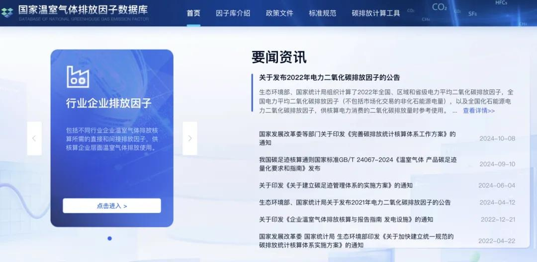 国家温室气体排放因子数据库网站:https://data.ncsc.org.cn/factoryes/index